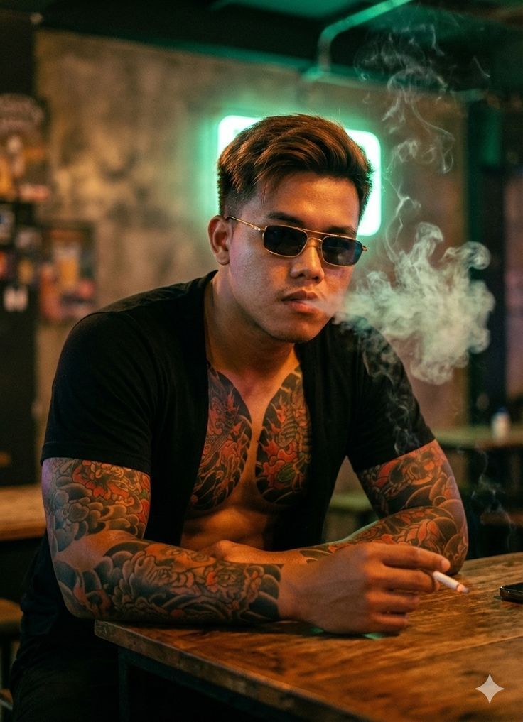 Dix minutes plus tard, le Tao en question sonne au loft de Ryo. Takeshi, c'est le boss, le beau gosse, la culture mêlée à l'intelligence. Tao, c'est la force brute, le gros bras trop serré dans son costume. Pas grand mais épais. Pas beau mais avec une gueule de fauve. Il respire la puissance et se déplace souplement.